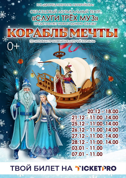 ГУК «Дворец искусств г. Бобруйска» приглашает на волшебную новогоднюю постановку – музыкальную сказку «Корабль мечты»!