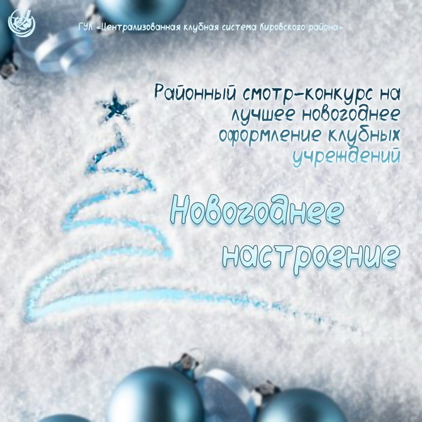 В течение всего декабря, в целях успешной подготовки к встрече Нового 2026 года и создания праздничного настроения для жителей и гостей района в новогодние и рождественские праздники, ГУК «Централизованная клубная система Кировского района» проводит районный смотр-конкурс на лучшее новогоднее оформление клубных учреждений «Новогоднее настроение».