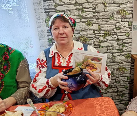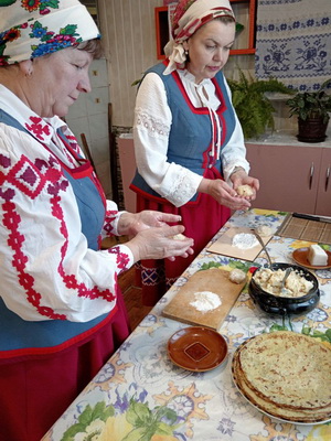 Как известно, белорусская национальная кухня богата своими традициями. На данную тематическую встречу были приглашены жители агрогородка Старый Остров Кличевского района, которые поделились своими семейными рецептами приготовления блюд из картофеля «Как моя бабушка пекла картофельную бабку в печи». Участники вечера готовили не только бабку, но и колдуны, комы (картофельные шарики со шкварками) и драники.