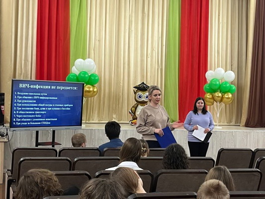 На мероприятии ведущая вместе с членами клуба обсудила ключевые аспекты, касающиеся СПИДа, представила международный символ борьбы с этой болезнью и раскрыла проявления ВИЧ-инфекции. О том, какие пути передачи существуют и в чем различие ВИЧ и СПИДа, рассказала инструктор-валеолог УЗ «Бобруйская центральная больница» Елена Николаевна Дворецкая. Также подросткам был продемонстрирован тематический видеоролик о развитии ВИЧ-инфекции. С помощью игр «Линия риска», «Ваше мнение» ребята получили представление о разных степенях риска заражения ВИЧ и высказали свою точку зрения по поводу заболевания СПИД.