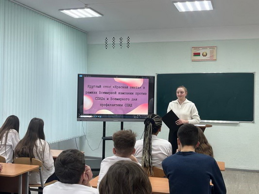 3 декабря 2025 года сектором по работе с детьми ГУК «Дворец искусств г. Бобруйска» был проведен круглый стол «Красная лента» в рамках Всемирной кампании против СПИДа и Всемирного дня профилактики СПИДа для учащихся ГУО «Средняя школа № 8 г. Бобруйска».