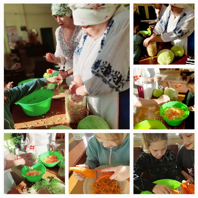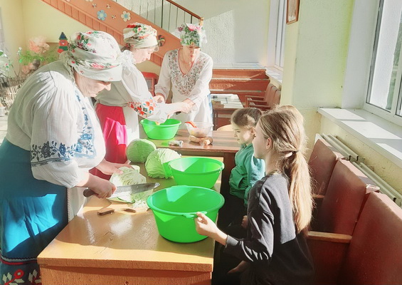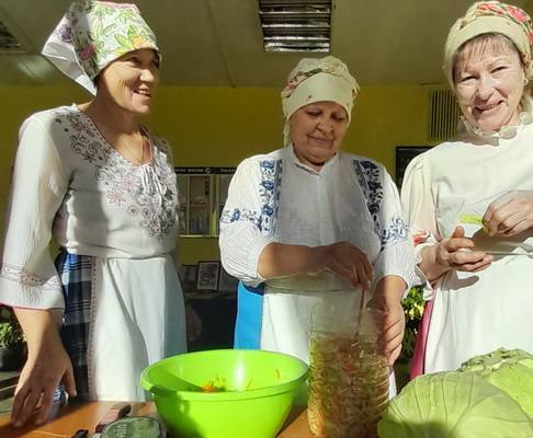 Ребята активно участвовали в занятиях и усвоили ключевые приемы заквашивания. Мероприятие было построено как сочетание демонстрации и практики: мастерицы последовательно поясняли и показывали этапы подготовки капусты, рассказали о выборе сортов, приемах шинкования, соотношении соли и массы, укладке в тару и способах придавливания.