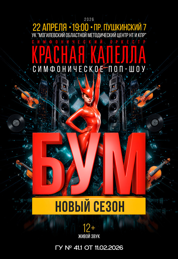 22 апреля в Могилеве состоится новый сезон симфонического поп-шоу «БУМ» от белорусского оркестра «КРАСНАЯ КАПЕЛЛА»