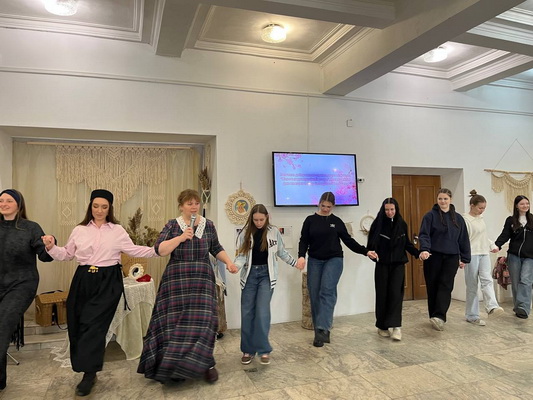 Праздничное настроение на открытии выставки дополнил своим музыкальным номером Виталий Иванов. Но на этом сюрпризы не закончились! Алёна Арсентьева подготовила для гостей нечто особенное – настоящий обряд весеннего обновления в виде хоровода. Это был не просто танец, а глубокий ритуал, который позволил каждому участнику почувствовать себя частью чего-то большего, зарядиться энергией весны и пробуждения. А чтобы праздник стал еще ярче, подруга Алёны, Юлия Богданович, пригласила всех желающих принять участие в совместном танце.