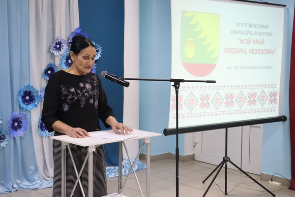 Пасля ўрачыстага адкрыцця чытанняў з аналітычнай інфармацыяй па паспяховаму выкарыстанню вынікаў краязнаўчай дзейнасці, якая праводзіцца ДУК “ЦКС Краснапольскага раёна”, з мэтай абмену вопытамвыступіла арганізатар чытанняў метадыст РЦК Марчанка В. А. Яна прывяла канкрэтныя прыклады такой дзейнасці, яе папулярызацыі і падкрэсліла важнасць краязнаўства, якое дазваляе насычаць культурныя мерапрыемствы канкрэтным мясцовым матэрыялам, захоўваць каларыт, самабытнасць сваёй культурнай спадчыны і трансліраваць, перадаваць гэты каштоўны капітал.