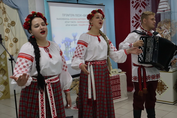 А яшчэ прысутным былі прэзентаваны новыя творы землякоў. Адзін з іх – аўтарская песня “Васілёчкі”, напісаная ў народнай манеры. Аўтар тэксту Валянціна Марчанка, аўтар музыкі Таццяна Астапенка, дырэктар ДУА “ДШМ г. п. Краснаполле”. А выканаў песню цудоўны дуэт педагогаў гэтай установы ў складзе Ангеліны Бартлевіч і Галіны Кузняцовай. Акампаніраваў дуэту Раман Астапенка.