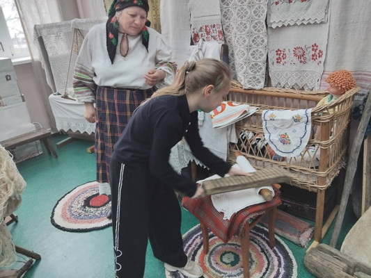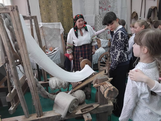 Мероприятие прошло в музейной комнате. Участники мероприятия с интересом слушали рассказ о возникновении старинных предметов быта, в частности, о ткацком станке. Особое внимание было уделено знакомству с традиционными видами крестьянской деятельности.