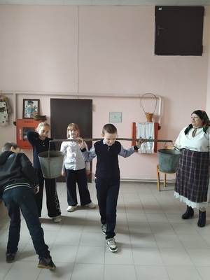 В рамках программы дети получили практические навыки, осваивая старинный способ переноски воды с помощью коромысла и ведер. Этот интерактивный элемент позволил им почувствовать связь с прошлым и лучше понять быт своих предков.