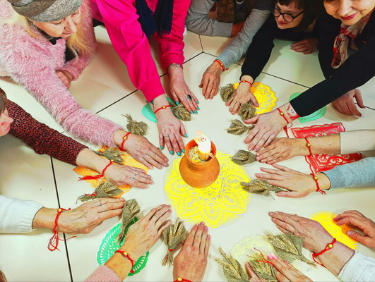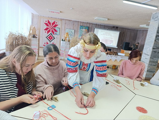 Мастер Ольга Прищепова поддержала старинную традицию и провела мастер-класс по созданию сувенира, а Наталья Чёрная научила гостей праздника плести браслеты-обереги в технике макраме.
