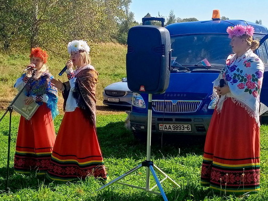 С хлебом-солью и песней: сотрудники сектора нестационарного обслуживания населения РЦКиНТ подарил творческий праздник жителям деревень Картыжи и Ремество Мстиславского района»