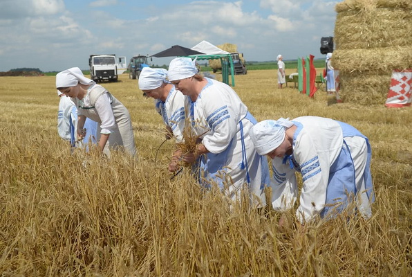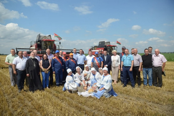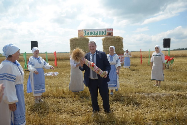Уже много лет уборка зерновых — это дело мощных комбайнов, машин, которые быстро и эффективно обрабатывают поля. Но, несмотря на это, каждый год, отдавая дань традиции, женщины выходят в поле и срезают первый сноп серпами. Этот ритуал, проникнутый уважением к земле и труду, кладёт начало богатому урожаю, связывая настоящее с богатым наследием прошлого. Это напоминание о том, что даже в век технологий важно чтить корни и традиции, которые делают нас теми, кто мы есть. Первый сноп былвручен председателю Бобруйского районного исполнительного комитета, Крицкому Михаилу Леонидовичу.