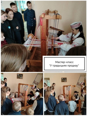 У пятніцу Наталля Рыгораўна прапанавала наведвальнікам выстаўку сваіх тканых работ “Мы доўжым традыцыі продкаў”, дзе прадстаўлены яе тканыя дарожкі і ручнікі, а потым запрасіла на майстар-клас “У традыцыях продкаў”.