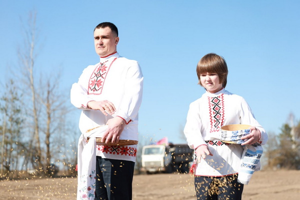 С торжественным началом посевных работ всех присутствующих поздравил председатель Быховского райисполкома Александр Киселев. На важное и нужное дело хлеборобов благословил протоиерей, благочинный Быховского округа отец Николай, который окропил святой водой семена, почву, технику, совершил молебен, помолился за то, чтобы Господь даровал земле хороший урожай. По старинному обряду, чтобы родился хороший урожай, в землю закопали кусочек хлеба из прошлогоднего зерна и обильно полили землю ключевой водой.