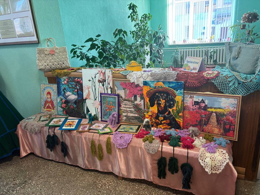 Уже в фойе гостей встречала выставка работ участников общественно-культурных клубов «Алеся» и «Золотая седина», а также семейно-бытового клуба «Семья». Здесь можно было полюбоваться на рукоделие, картины и другие плоды творчества местных умельцев.