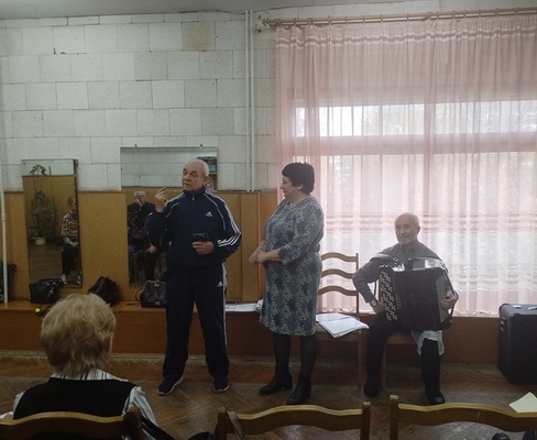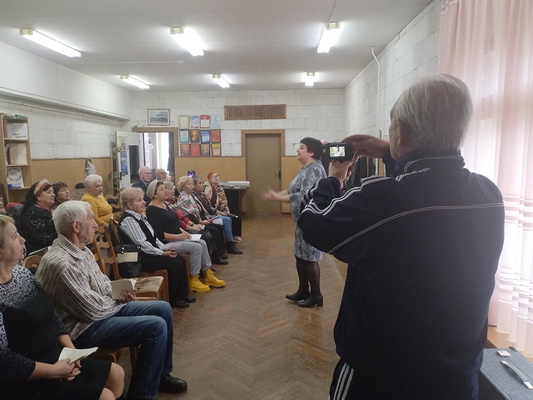 Владимир Зубов познакомился с участниками хора, с художественным руководителем Дворца искусств Натальей Александровной Чугуевой, рассказал о себе и о деятельности Речицкого народного хора Сельского дома культуры, которым он руководит.