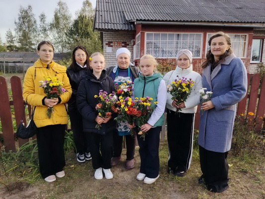 В Новосамотевичском клубе свободного времени стало доброй традицией в первый день октября навещать пожилых людей, дарить цветы, желать здоровья и радовать песнями. Участники детского вокального ансамбля «Кірмашыкі» вместе со специалистами клуба провели акцию «Добрым словом друг друга согреем». Участников акции с радостью встречали у калитки дома или на лавочке, где обычно вечерком собираются сельчане, чтобы обсудить дела насущные. Пусть малость, но от искренних детских пожеланий улыбка появлялась на лицах и приятно становилось на душе. Каждый остался с хорошим настроением и с прекрасным букетом в руках.