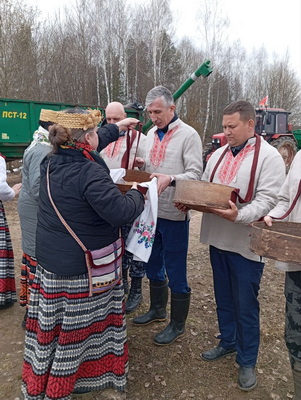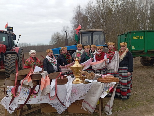 А помогают воплотить идею, подготовить действо и провести его правильно, чтобы земля приняла дары и услышала просьбы хлеборобов, отдел нестационарного обслуживания населения и творческие работники районного Центра культуры и народный фольклорный ансамбль «Адраджэнне». Здесь все было интересно. Песни, чтобы урожай был щедрым, обрядовые наговоры, чтобы поля были чистыми от сорняков, а земля щедро питала зерно. Были и традиционные вышитые рушники, и соль, и вода в кувшине, – в общем, обряд задобрил все стихии, чтобы солнце было ласковым, воды было вдоволь, ветер оберегал посевы, а земля щедро делилась накопленным богатством.